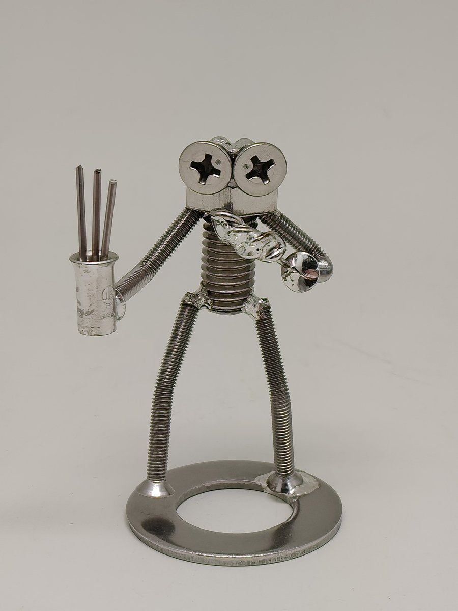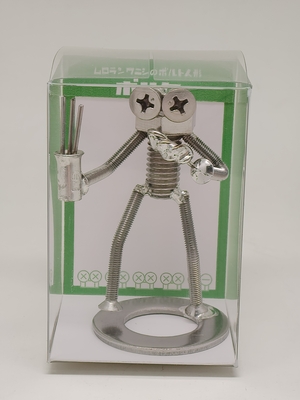 【ボルタについて】 ボルタは鉄のまち室蘭で作られているボルト人形です。鉄を用いたまちづくり活動を行っているテツプロが製作しています。 ステンレスのボルトやナットをハンダ付けして作りました。職人がひとつひとつ手作りしています。 ボルタは10代の男子。各ポーズについているストーリーからは、ドジで飽きっぽく、しかし音楽のセンスだけは人並み以上にあるキャラクターであることがうかがえます。
