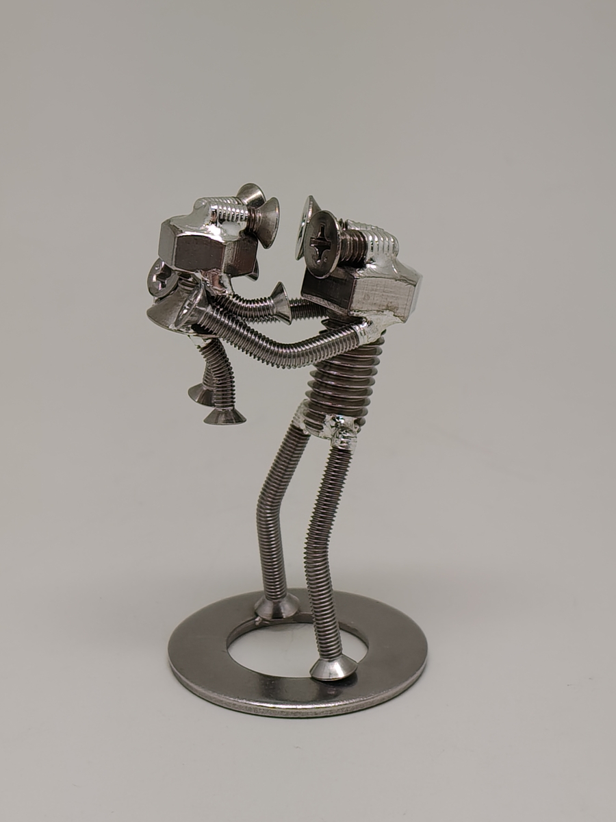 【ボルタについて】 ボルタは鉄のまち室蘭で作られているボルト人形です。鉄を用いたまちづくり活動を行っているテツプロが製作しています。 ステンレスのボルトやナットをハンダ付けして作りました。職人がひとつひとつ手作りしています。 ボルタは10代の男子。各ポーズについているストーリーからは、ドジで飽きっぽく、しかし音楽のセンスだけは人並み以上にあるキャラクターであることがうかがえます。
